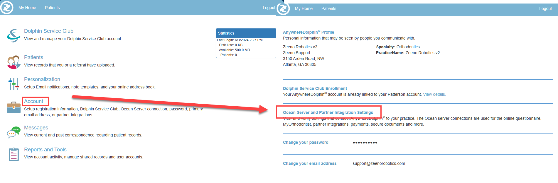 Navigate: Go to Account > Ocean Server and Partner Integration Settings.