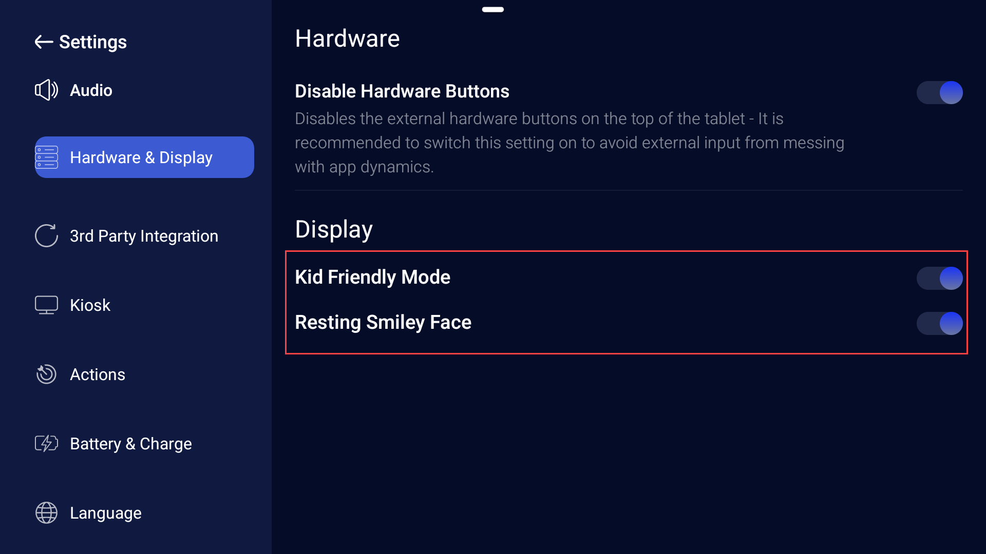 Go to Settings → Hardware & Display → Enable Resting Smiley Face