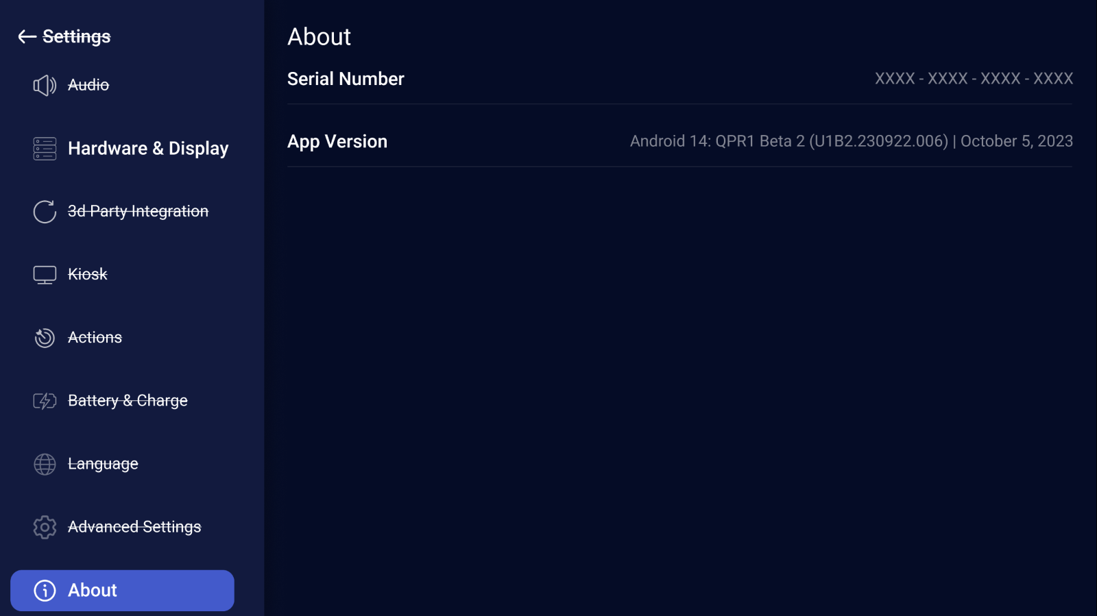 About | On this screen you will have some more information about your Zeeno, general information screen. |
