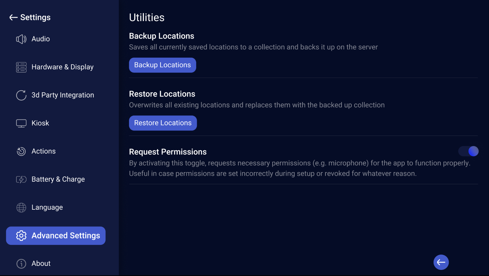 Backup Locations | This saves the locations you currently have saved to a backup. |